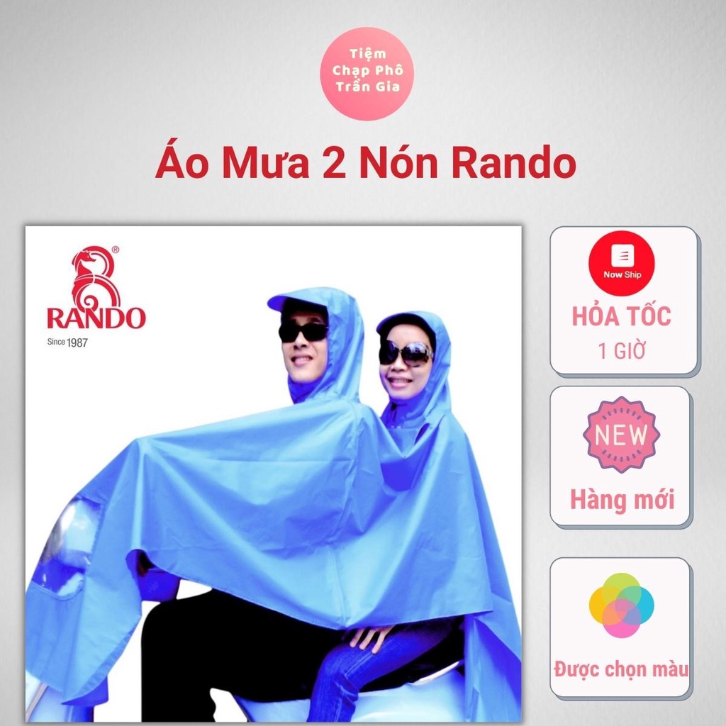 Áo Mưa 2 Nón Có Kiếng Che Đèn Xe Vải Dù Cao Cấp Chính Hãng Rando