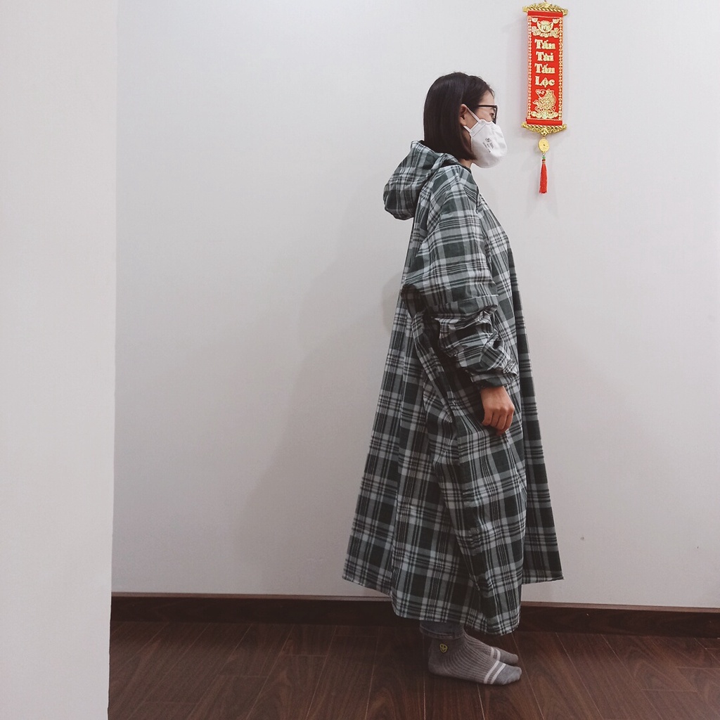 - Áo có kích thước to giúp che kín người, bảo vệ bạn hoàn toàn kể cả những tia nước bắn từ hai bên xe.
