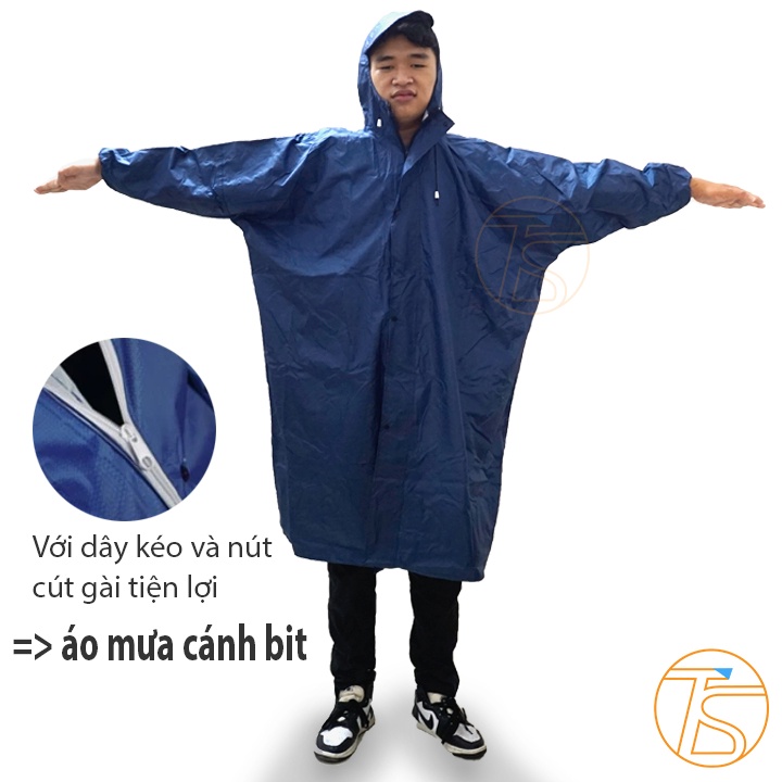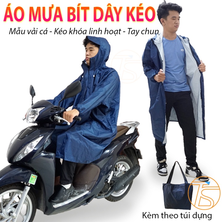 Áo Mưa Bít Dây Kéo Khóa Vân Da Cá 1m3 Có Tay Chun Tiện Lợi Chống Thấm Đi Mưa