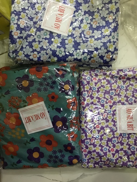 - Áo mưa hoạ tiết xẻ tà 65k/cái