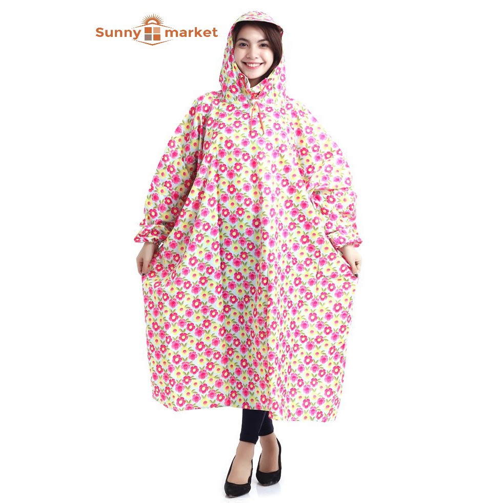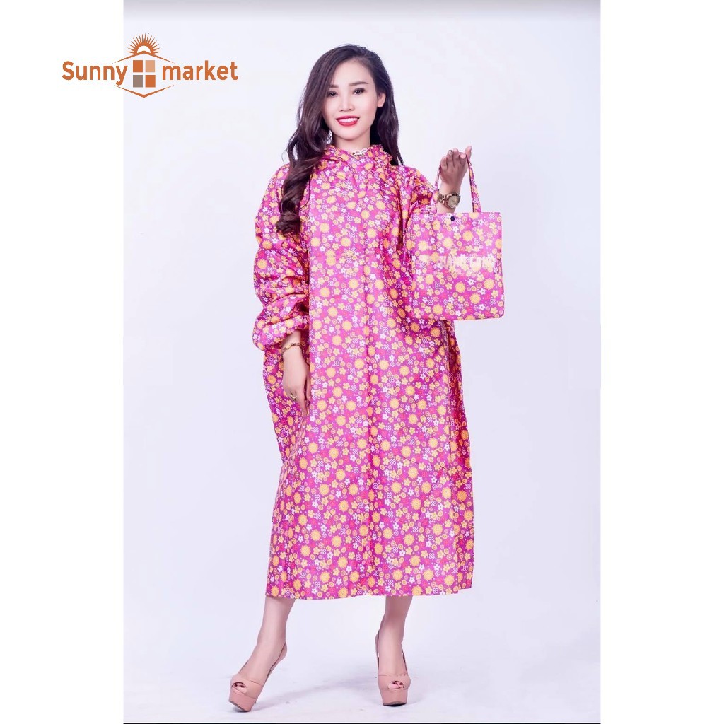 - Áo mưa với họa tiết bông xinh xắn, mang lại cho bạn cảm giác đẹp và thời trang khi mặc.