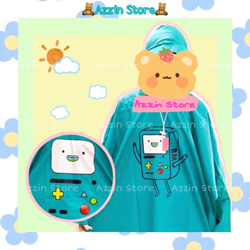 Giới thiệu Áo Mưa BMO Adventure Time Hoạt Hình Dễ Thương Cánh Dơi Màu Xanh Phong Cách Hàn Quốc Vải PVC Tiện Lợi Cute Azzin Store