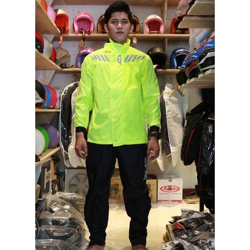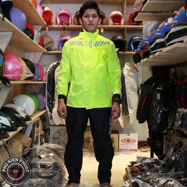 - Được may sau lưng nhiều sọc phản quang giúp cho việc đi đường an toàn hơn dưới mưa, tối.