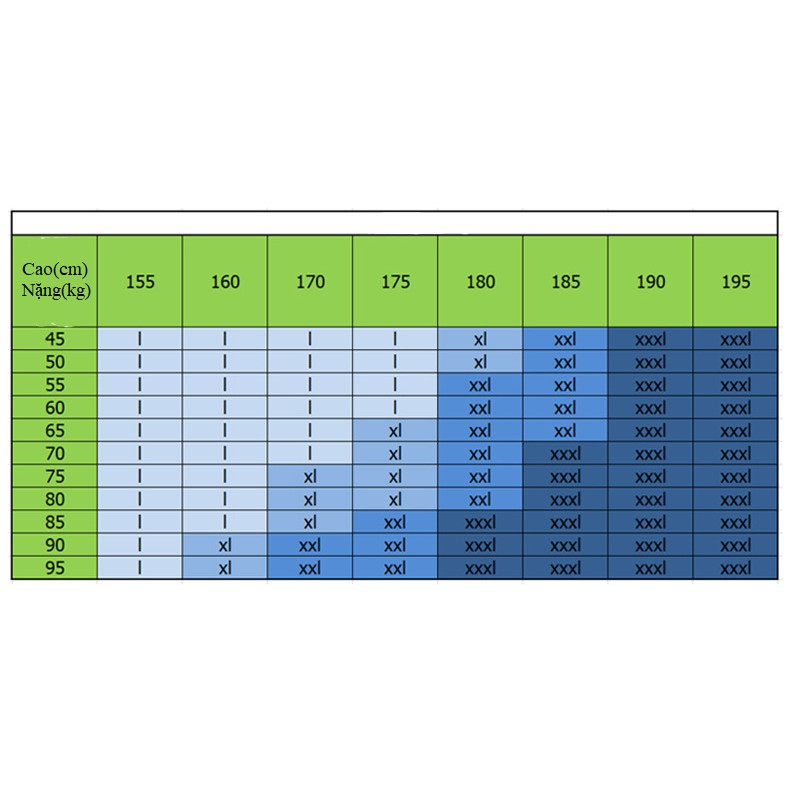 Size 3XL: Trên 190 cm, Cân nặng trên 90kg
