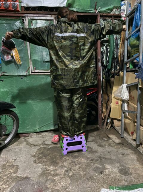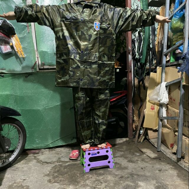 Áo mưa bộ vải dù họa tiết lính rằn ri cao cấpHình ảnh và video shop tự chụp và quay video