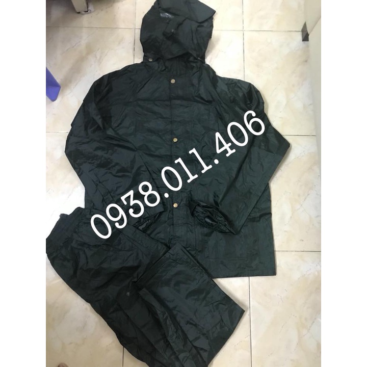 Áo mưa bộ màu xanh lính chất liệu dày 3 size bộ 4 món