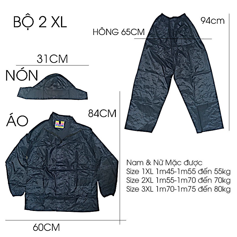 Áo Mưa Bộ Size 2XL 1m55-1m70 đến 70kg.