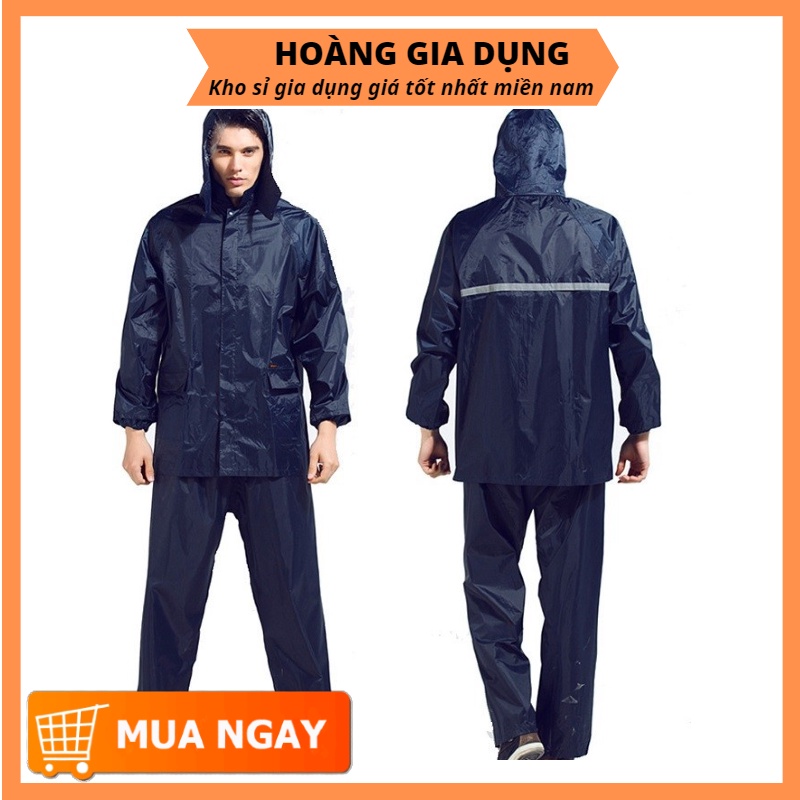 Áo Mưa Bộ Vải Dù Xanh Đen Siêu Bền Không Thấm Nước Nhiều Size Nam & Nữ AM08