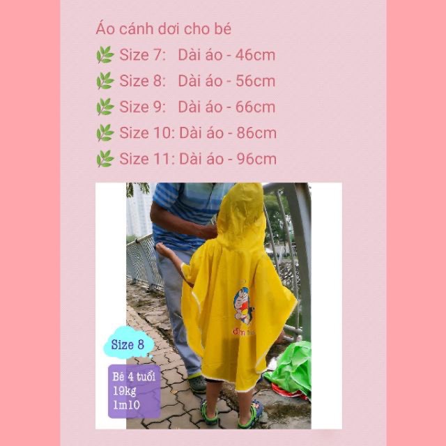 Tên sp: Áo mưa cánh dơi cho bésize 7 áo, phù hợp cho các bé từ 15 tháng.