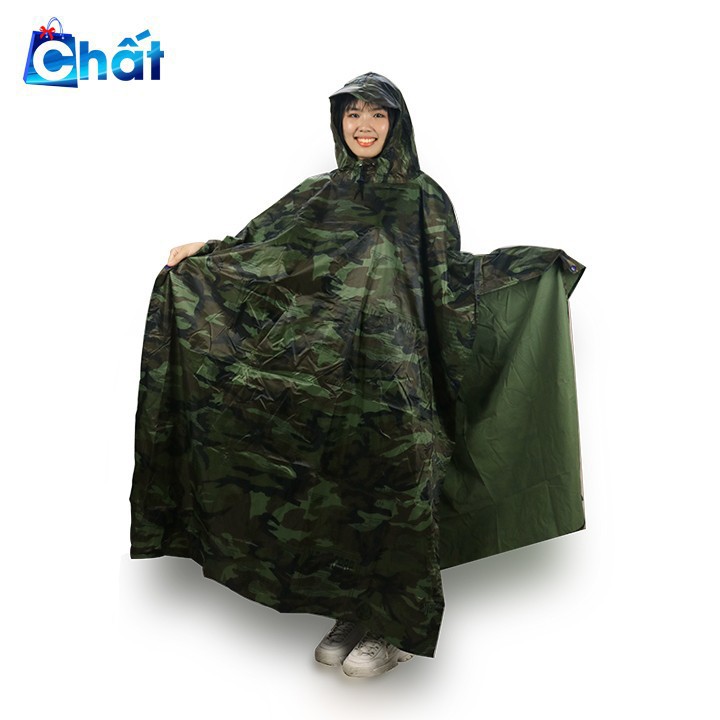 - Thiết kế cánh dơi tà rộng có thể sử dụng cho một người hay hai người khi đi xe máy, hoặc dùng để trùm cả balô, là vật dụng cực hữu ích khi đi dã ngoại. Họa tiết rằn ri hết sức cá tính, mạnh mẽ, màu sắc hiện đại, phong cách.