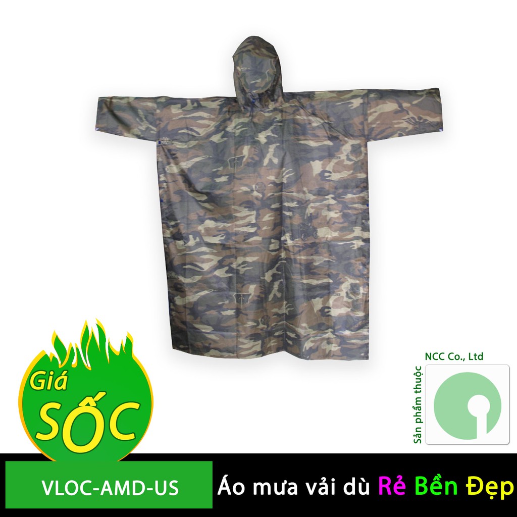 Áo mưa cánh dơi (xẻ tà) vải dù cao cấp rằn ri lính Mỹ - VLOC-AMD-US (Màu rằn ri)