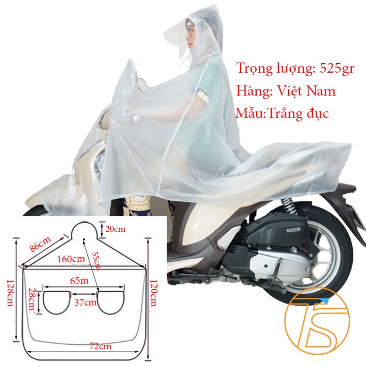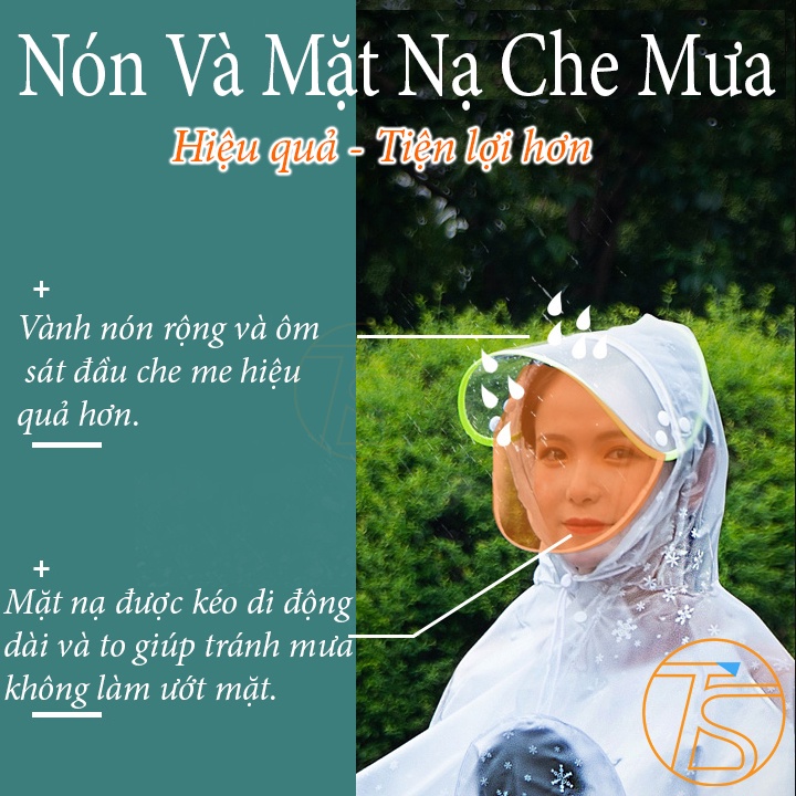 Áo mưa cánh tròn che kính chiếu hâu và đèn là dòng sản phẩm áo mưa cánh trong đặc biệt có nón và khẩu trang (mặt nạ) giúp bạn che mưa khi xe trong mùa mưa rất tiện lợi