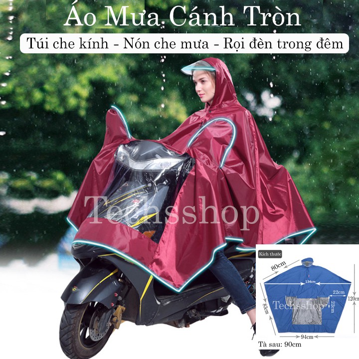 Áo Mưa Cánh Tròn Có Nón Phản Quang Có Túi Che Kính Chiếu Hậu Đi Mưa Tiện Lợi - Loại 1 đầu
