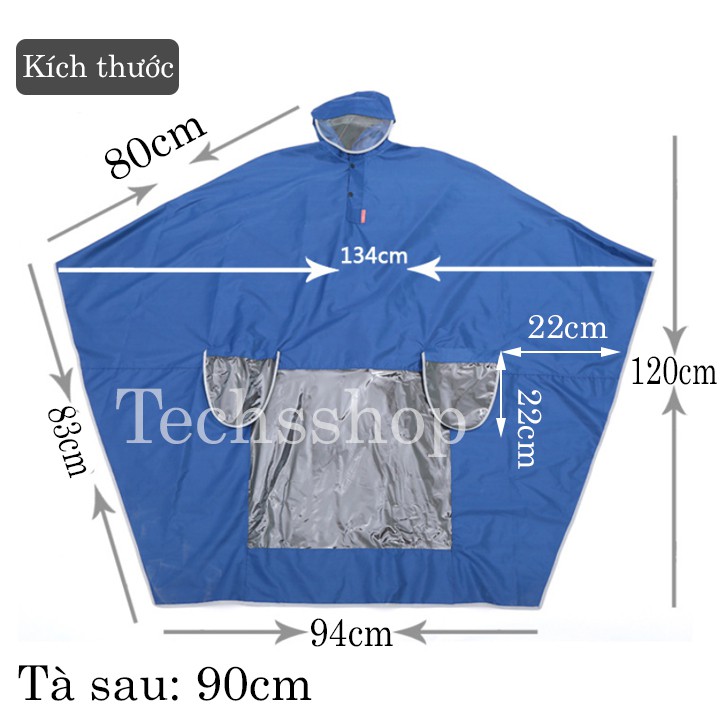 Kích thước áo mưa (chưa tính nón): 120x94x80 cm (tà sau: 90 cm)