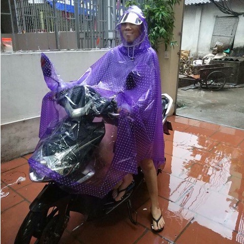 👉 Áo mưa có 3 màu: xanh, tím, hồng