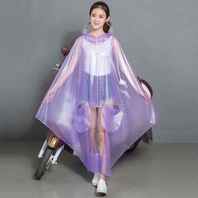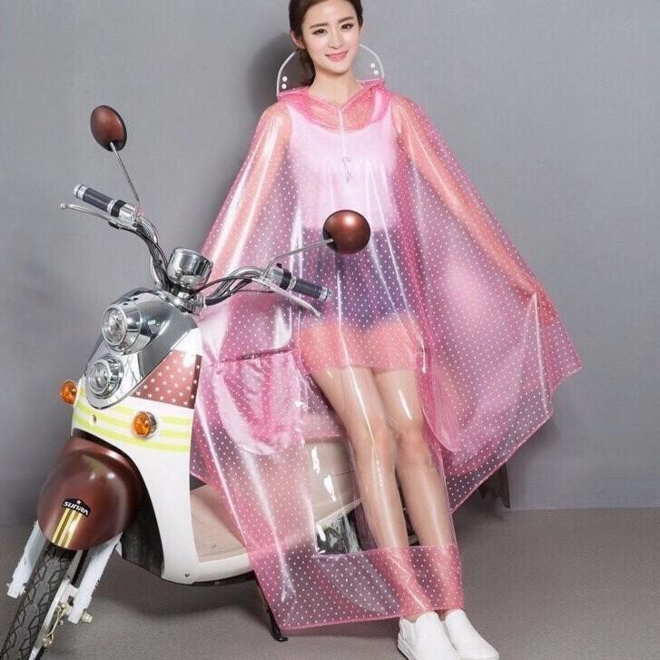 - Thiết kế độc đáo với nhiều màu sắc vô cùng trẻ trung với họa tiết chấm bi xinh sắn, đặc biệt áo mưa dạng trong nên bạn vẫn có thể diện đồ bên trong ngay cả khi mặc áo mưa