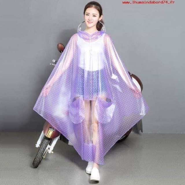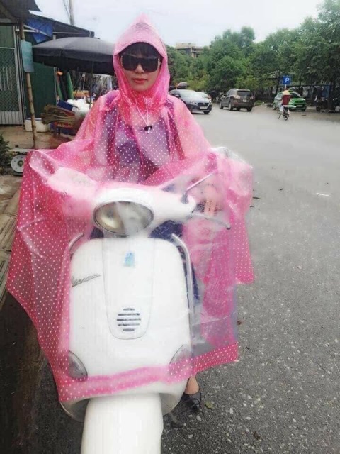 Áo mưa châm bi kèm luôn khẩu trang nên đi trời mưa to vẫn ko bị ướt mặt nhé, đặc biệt mấy bạn bị cận thì ko lo nhòe kính đâu