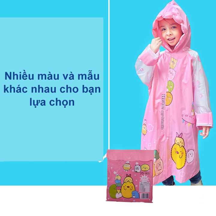 Áo mưa cho bé gái và bé trai 4-10 tuổi có thể làm phồng nón trùm cao cấp hình thú đủ màu đáng yêu BBShine – AM014