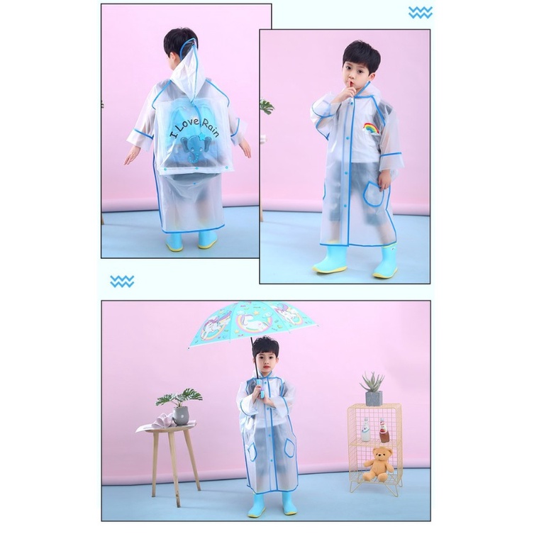 Giới thiệu Áo mưa cho bé trong suốt nhẹ mềm không mùi cho bé từ 80cm đến 145cm có túi che balo