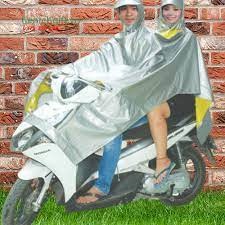 -Áo mưa đôi có 2 mũ, kính che đèn và lỗ xỏ gương xe máy, thuận tiện cho 2 người cùng di chuyển khi trời mưa.