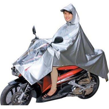 -Áo mưa choàng 2 da 1 người có kính che đèn và lỗ xỏ gương cho xe máy.