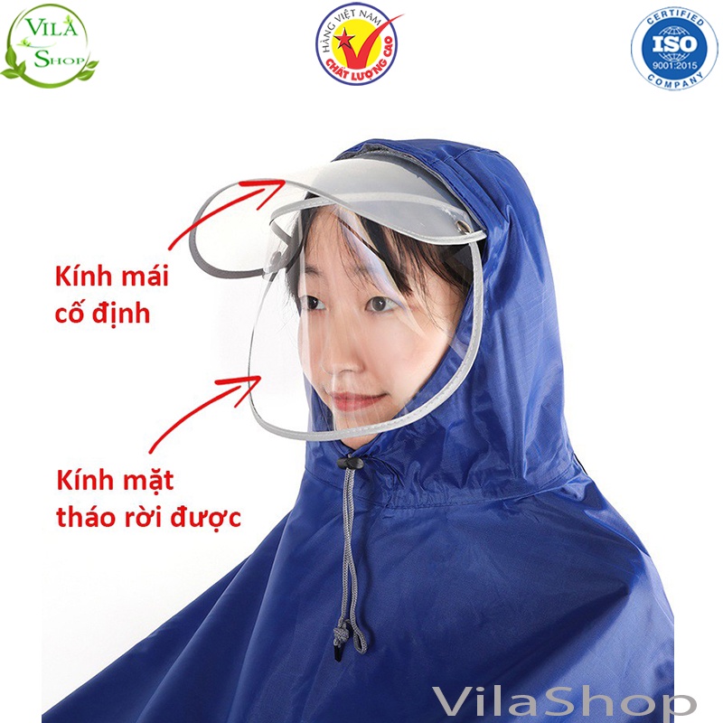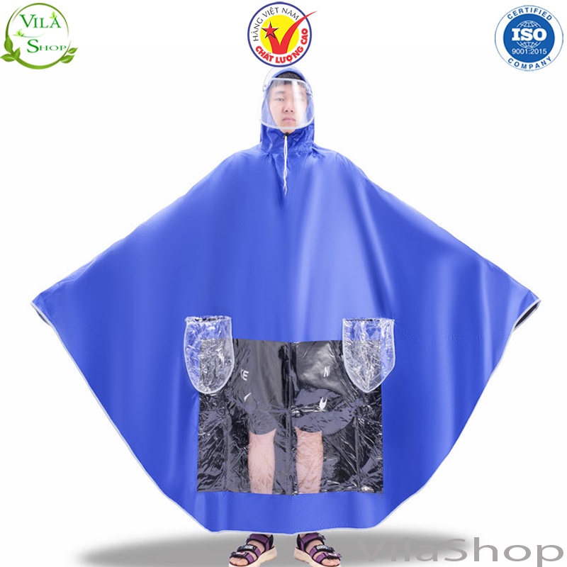 + Áo mưa có kính thiết kế dạng tay cánh dơi vải dù gọn nhẹ, màu sắc thanh lịch. Thiết kế độc đáo bằng chất liệu vải nhựa 2 da PVC chống thấm cao cấp với công nghệ sản xuất tiên tiến. Mặt vải sản xuất theo nguyên tắc lá khoai ngứa, không giữ nước, giúp các bạn nhanh chóng gấp gọn và để vào cốp mà không lo áo bị hôi