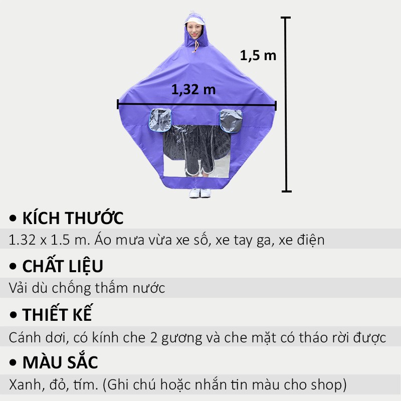 + Kiểu dáng: Áo mưa cánh dơi dành cho 1 người Và 2 Người