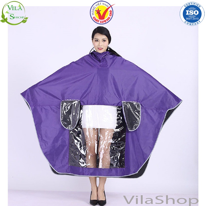 + Áo mưa có kính thiết kế dạng tay cánh dơi vải dù gọn nhẹ, màu sắc thanh lịch. Thiết kế độc đáo bằng chất liệu vải nhựa 2 da PVC chống thấm cao cấp với công nghệ sản xuất tiên tiến. Mặt vải sản xuất theo nguyên tắc lá khoai ngứa, không giữ nước, giúp các bạn nhanh chóng gấp gọn và để vào cốp mà không lo áo bị hôi