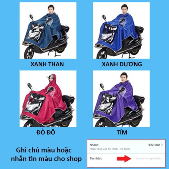 - Áo mưa có kính thiết kế dạng tay cánh dơi vải dù gọn nhẹ, màu sắc thanh lịch. Thiết kế độc đáo bằng chất liệu vải nhựa 2 da PVC chống thấm cao cấp với công nghệ sản xuất tiên tiến. Mặt vải sản xuất theo nguyên tắc lá khoai ngứa, không giữ nước, giúp các bạn nhanh chóng gấp gọn và để vào cốp mà không lo áo bị hôi