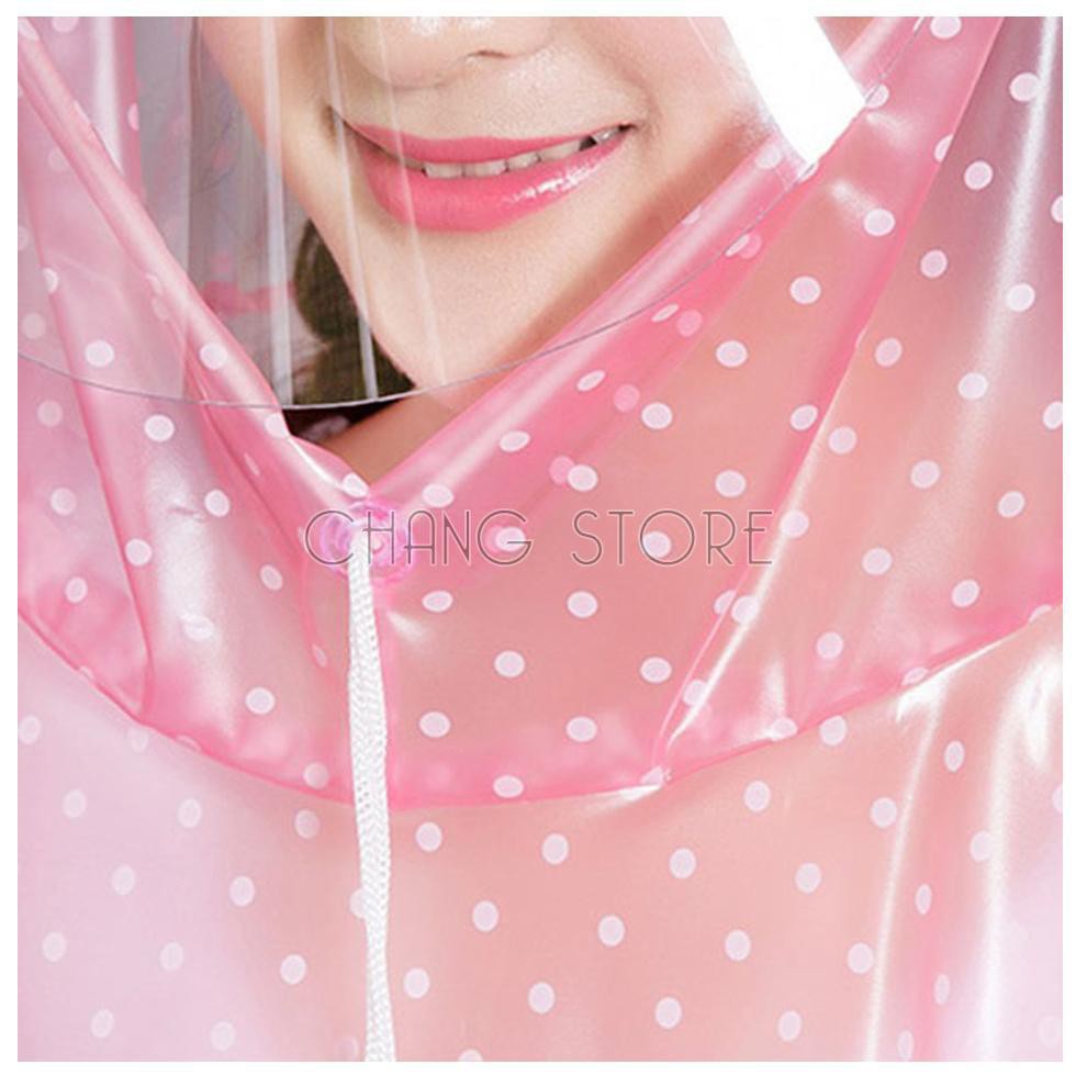 - Thiết kế trẻ trung với họa tiết chấm bi xinh xắn, mặc dù bạn mặc áo mưa nhưng trông bạn vẫn rất xinh xắn.