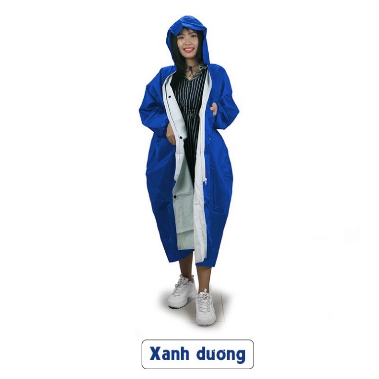Áo đi mưa có dây kéo phía trước là áo mưa may theo kiểu bít nhưng may thêm dây kéo ở giữa phía trước để tiện hơn khi sử dụng