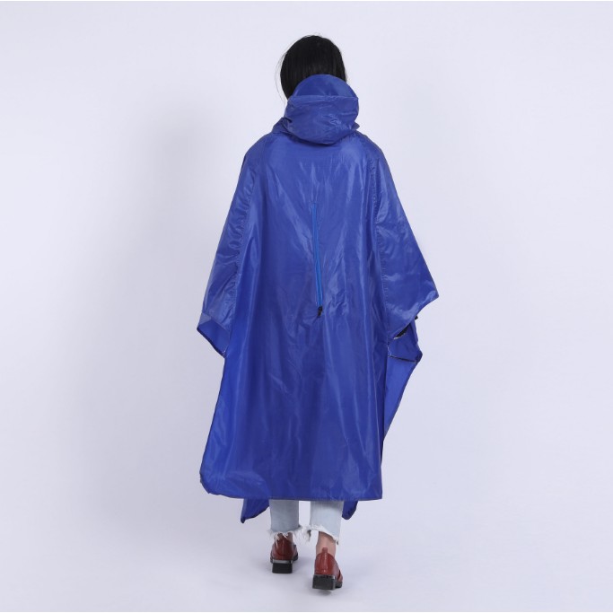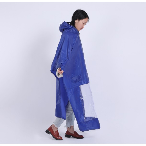 - Áo mưa được thiết kế dạng choàng, có mũ, xẻ tà tiện dụng, chỉ cần thao tác trùm đầu đơn giản, thuận tiện cho người đi xe máy, xe đạp.