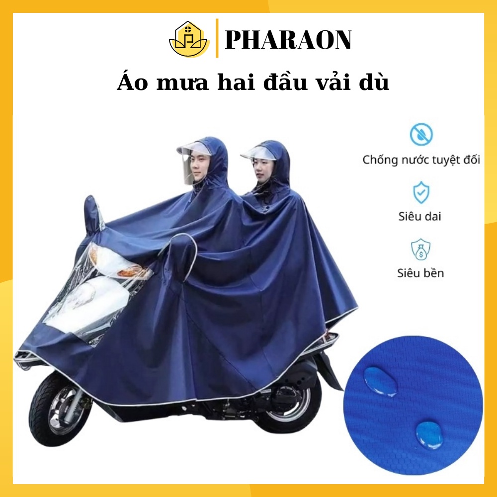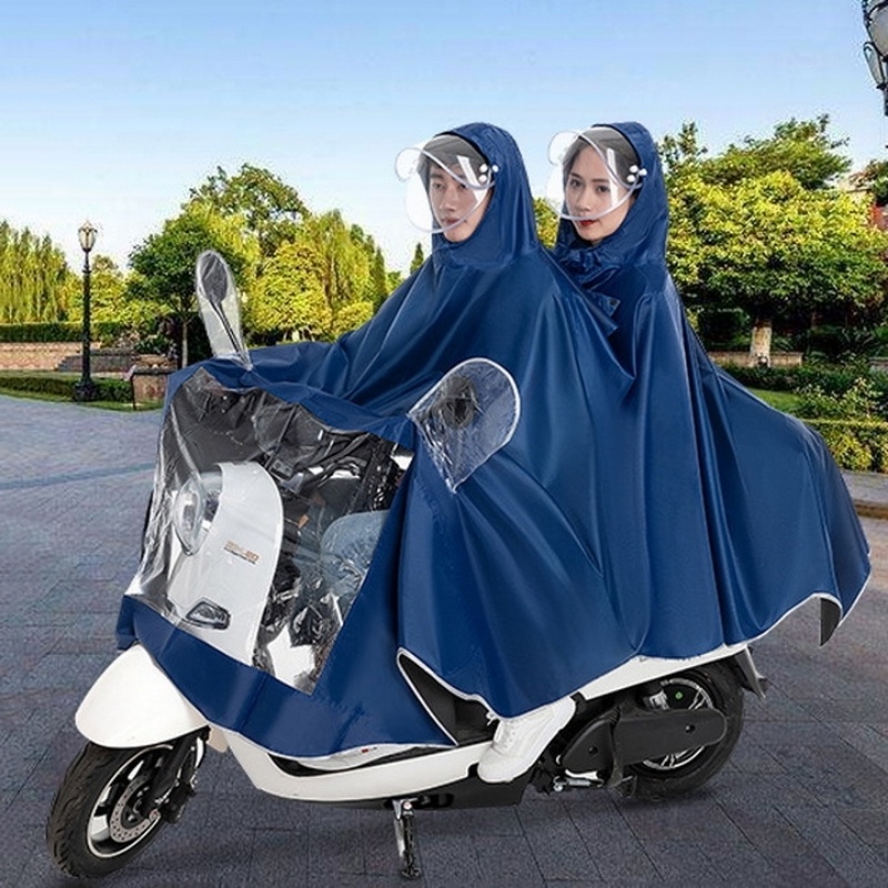Áo mưa đôi 2 đầu cánh dơi vải dù to, che kín người theo đúng kích thước tiêu chuẩn, có lớp vải nhựa trong ở mặt trước của áo giúp không bị che khuất tầm ánh sáng khi lái xe vào buổi tối.