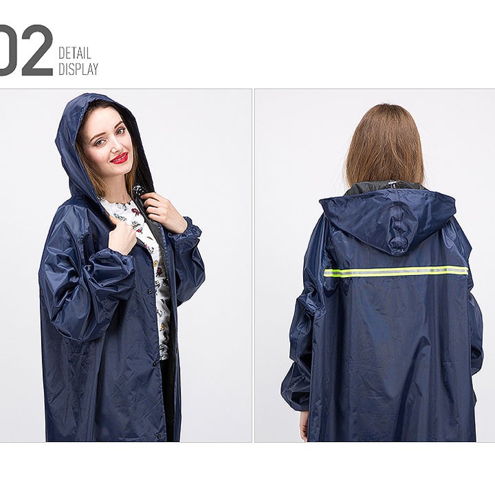 + Dáng choàng dài, có mũ trùm đầu không gây vướng khi lái xe, gọn nhẹ khi đi bộ.