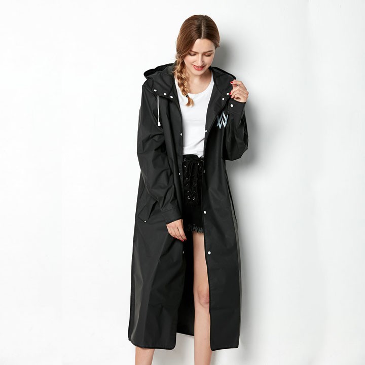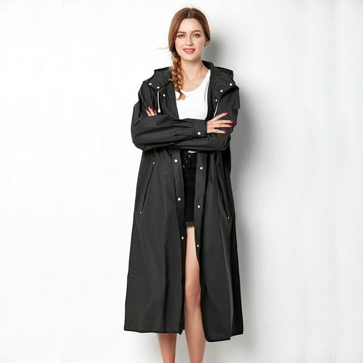 Giới thiệu Áo mưa đơn dáng dài có mũ trùm đóng cúc bấm phù hợp cho cả nam và nữ