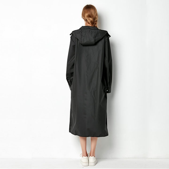 Áo mưa đơn dáng dài có mũ trùm đóng cúc bấm phù hợp cho cả nam và nữ