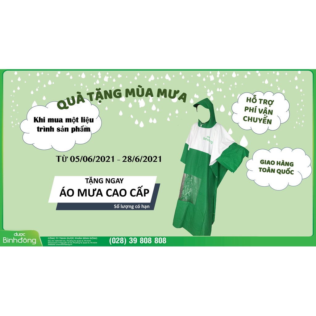 ÁO MƯA DƯỢC BÌNH ĐÔNGĐược thiết kế tặng riêng cho khách hàng mua sản phẩm của Công ty Dược Phẩm Bình Đông