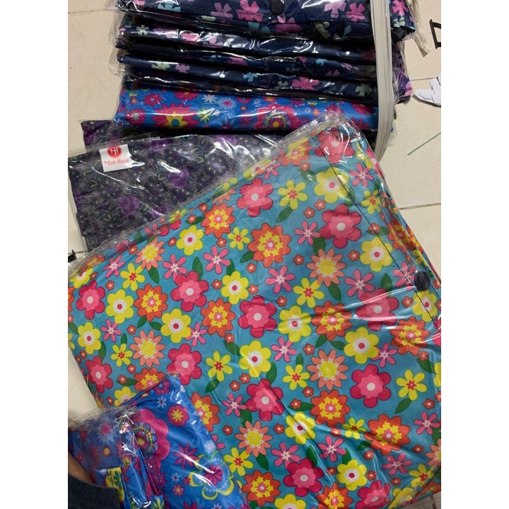 Áo mưa Hoa bít không xẻ tà vải dù tiện lợi-Hàng cao cấp Đường may chắc chắn