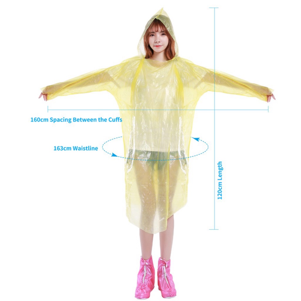 Áo mưa khẩn cấp trong suốt dùng 1 lần cho người lớn phù hợp hoạt động ngoài trời