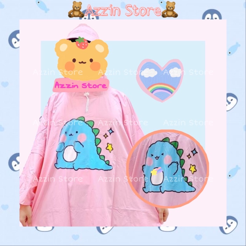 Giới thiệu Áo Mưa Khủng Long Xanh Lam Hoạt Hình Dễ Thương Cánh Dơi Màu Hồng Phong Cách Hàn Quốc Vải PVC Tiện Lợi Cute Azzin Store