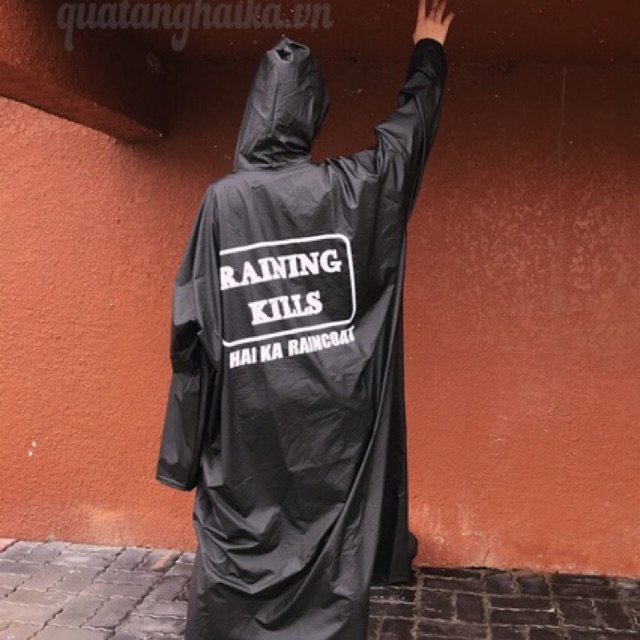 ÁO MƯA MĂNG TÔ ĐEN RAINING KILLSÁo mưa Măng Tô Cá tính cao cấp chất liệu màng nhựa PVC cao cấp siêu bền, mịn, dày dặn bền và không gây mùi khó chịu, hoạt tiết in hình dễ thương - phong cách.