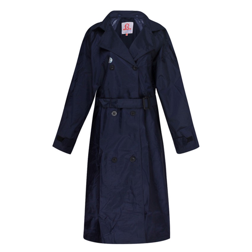 -Bộ áo mưa măng tô thời trang với đai thắt duyên dáng rất được nữ giới ưa chuộng. Kiểu măng tô này người mặc trông rất sành điệu và thời trang dù đi trong mưa, áo mưa phủ dài hơn đầu gối nên mặc không bị ướt. Đồng thời với nón đội rời linh hoạt phù hợp với khi người đi xe máy.