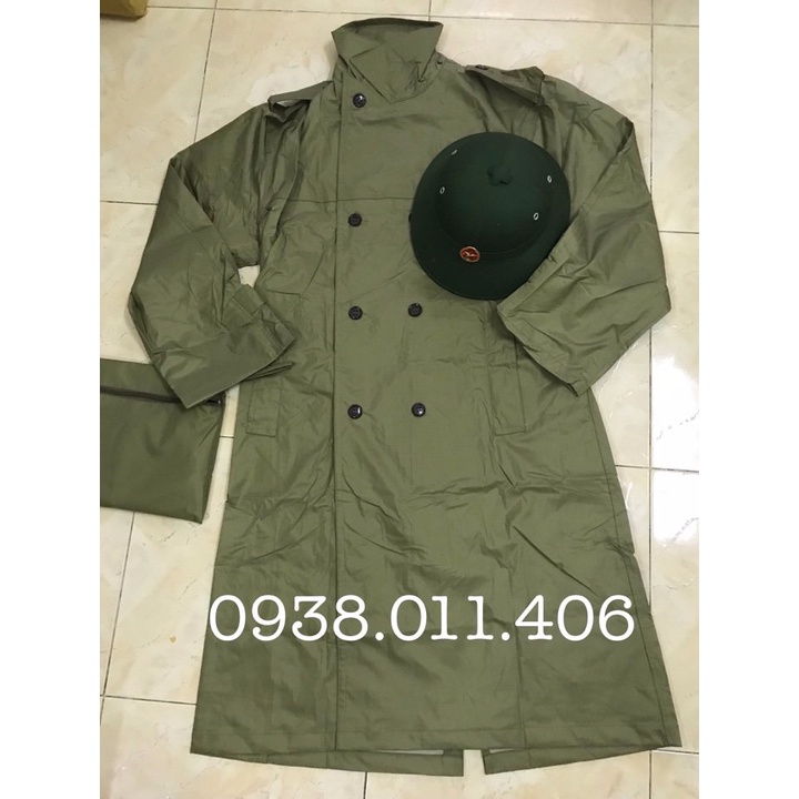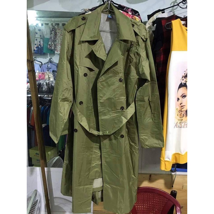 Áo mưa măng tô màu vàng oliu- áo mưa chất liệu bền chóng nước chống rét 3 size bộ 3 món