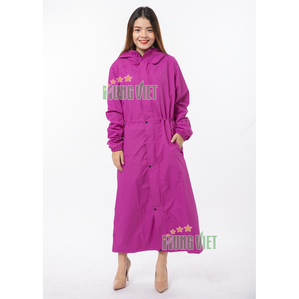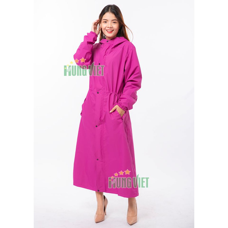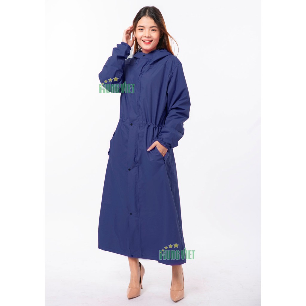Áo mưa măng tô nữ PU 2 lớp cao cấp vải Hàn Quốc. Chất liệu áo mưa PU cao cấp nhập khẩu Hàn Quốc chống thấm tuyệt đối với 2 lớp vải chống thấm nước với đường may chắc chắn được ép chống thấm tuyệt đối. Chất liệu vải an toàn thân thiện môi trường mềm không bị cứng vỡ khi sử dụng như các chất liệu thông thường khác. Công ty áo mưa Hưng Việt tự hào luôn đi đầu trong ngành áo mưa.- Phần thân eo có dây chít eo rất tiện dụng và rất thời trang