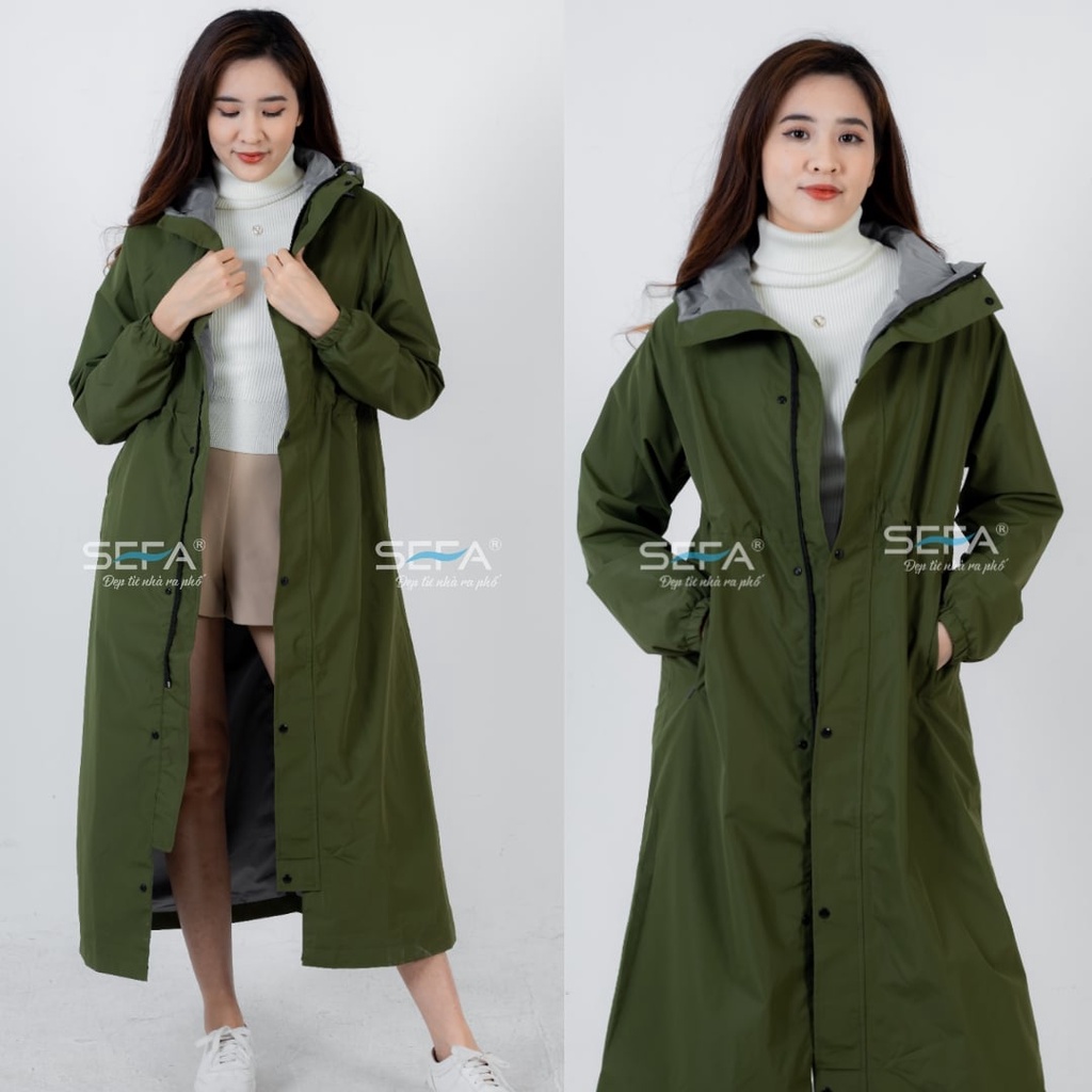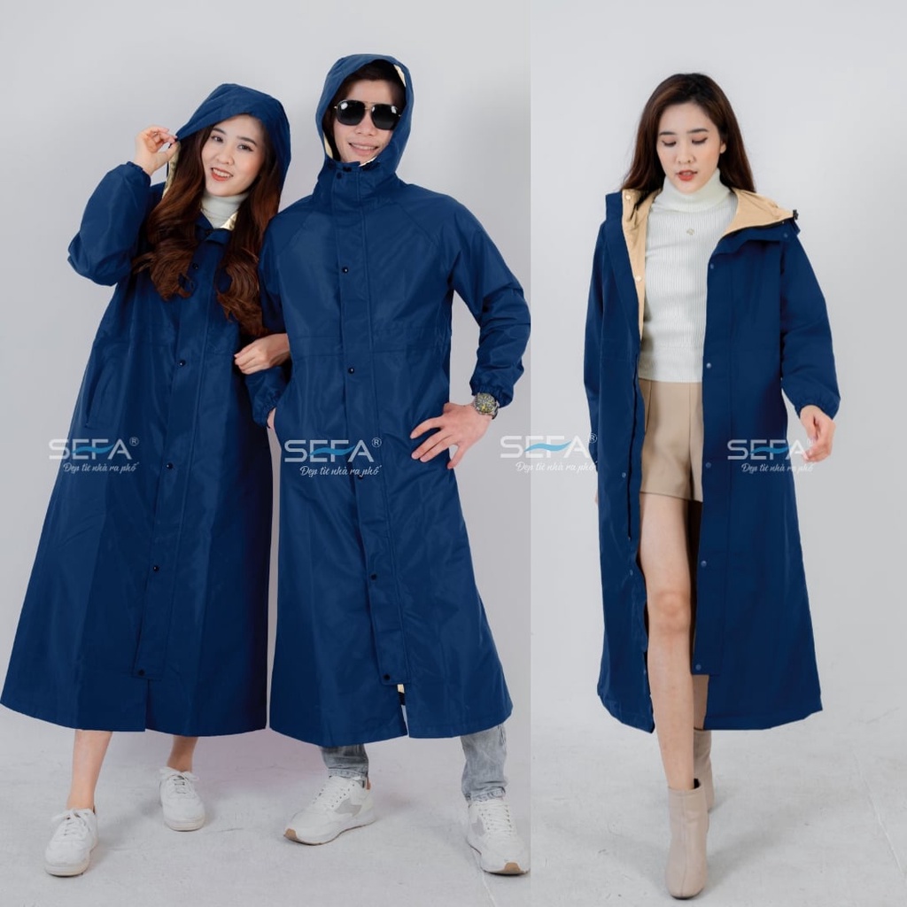 Áo mưa măng tô SEFA thiết kế hai lớp, hàn nhiệt chống nước tuyệt đối