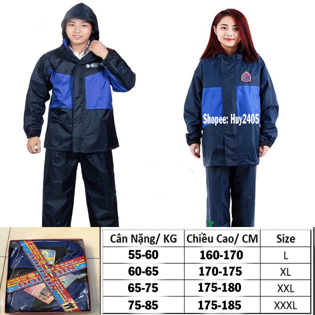 - Bộ áo mưa DOLPHIN 2 công dụng vừa đi mưa, vừa chống lạnh được thiết kế bộ áo dài rộng rãi, kiểu dáng thể thao đẹp, đường may tỉ mỉ chắc chắn kèm theo đường keo ép dính chống thấm cao bởi công nghệ tiên tiến. Từ đó tạo cho bạn sử dụng sản phẩm an toàn cảm giác thoải mái khi trời mưa to.