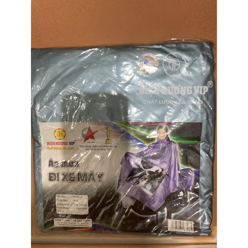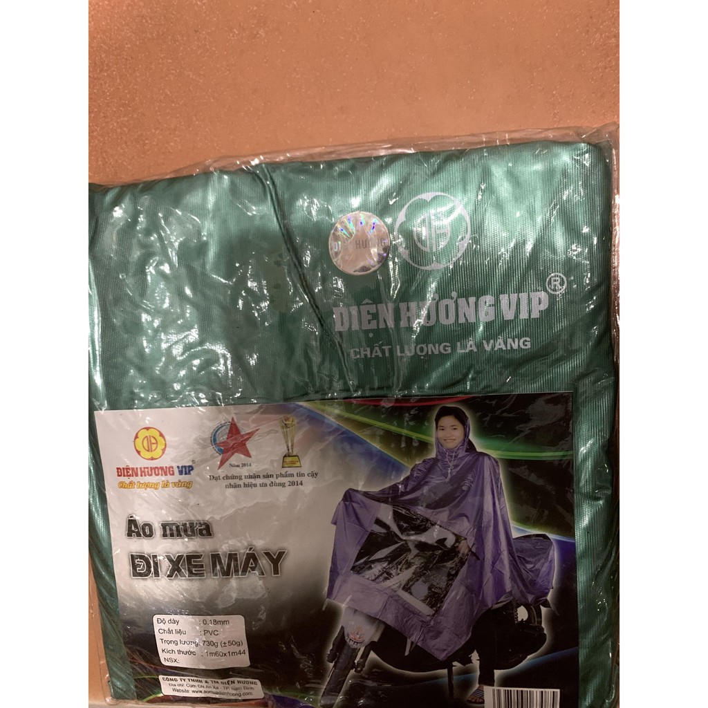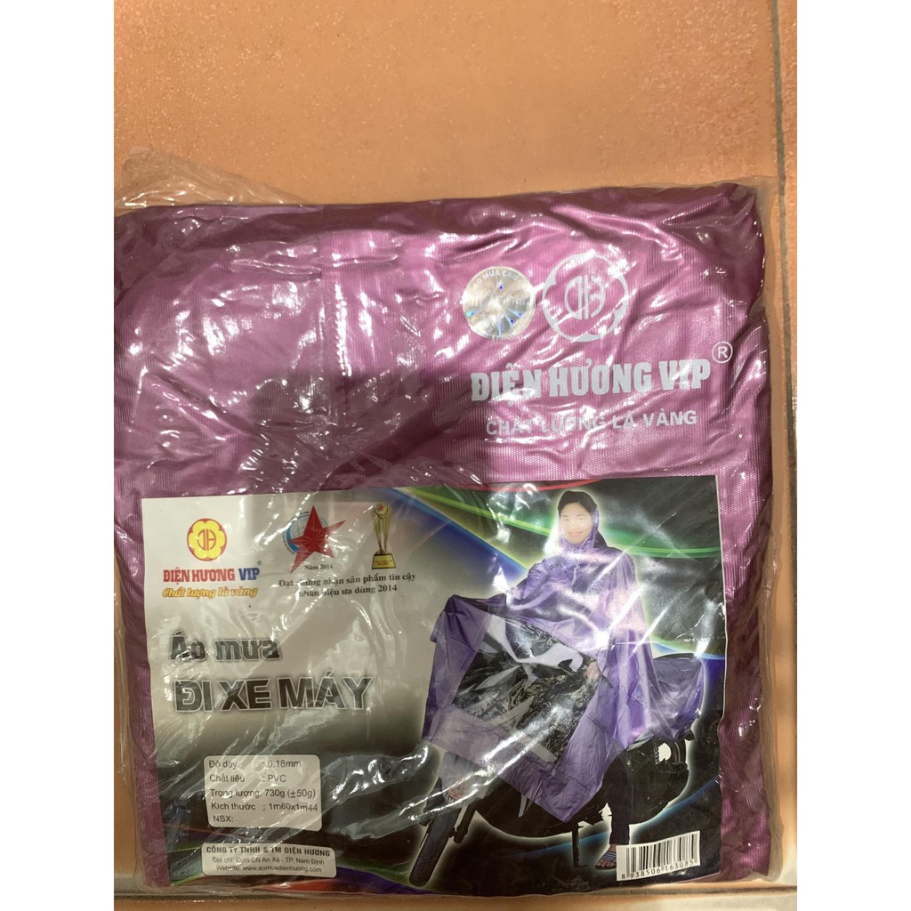 ÁO MƯA NHŨ 1 ĐẦU CỦA CÔNG TY ĐIỆN HƯƠNG, HÀNG LOẠI 1 CHẤT LƯỢNG CAOChất liệu : vải nhựa tráng nhựa PVC siêu nhẹ. Chống thấm cao cấp , dẻo bền , mềm mại và thoải mái, không phân lớp, hoàn toàn không thấm nước ., ĐỘ BỀN CAO