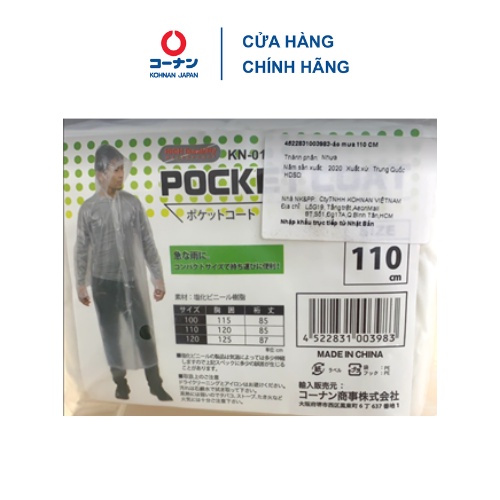 Áo mưa nhựa dẻo trong suốt KOHNAN 1 đầu Nhật Bản