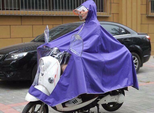 - Áo mưa được thiết kế dạng choàng, có mũ, xẻ tà tiện dụng, chỉ cần thao tác trùm đầu đơn giản, thuận tiện cho người đi xe máy, xe đạp.