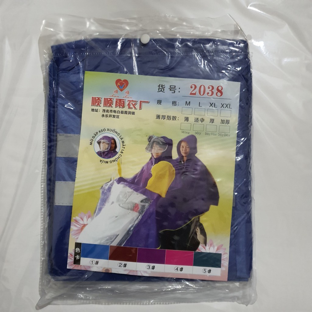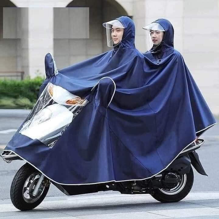 - Áo 2 Mũ : Dài áo tà trước 155cm - Dài tà sau 160 cm - Rộng áo 155 cm - Có Kính chắn mưa gió ở mũ - Có bao gương